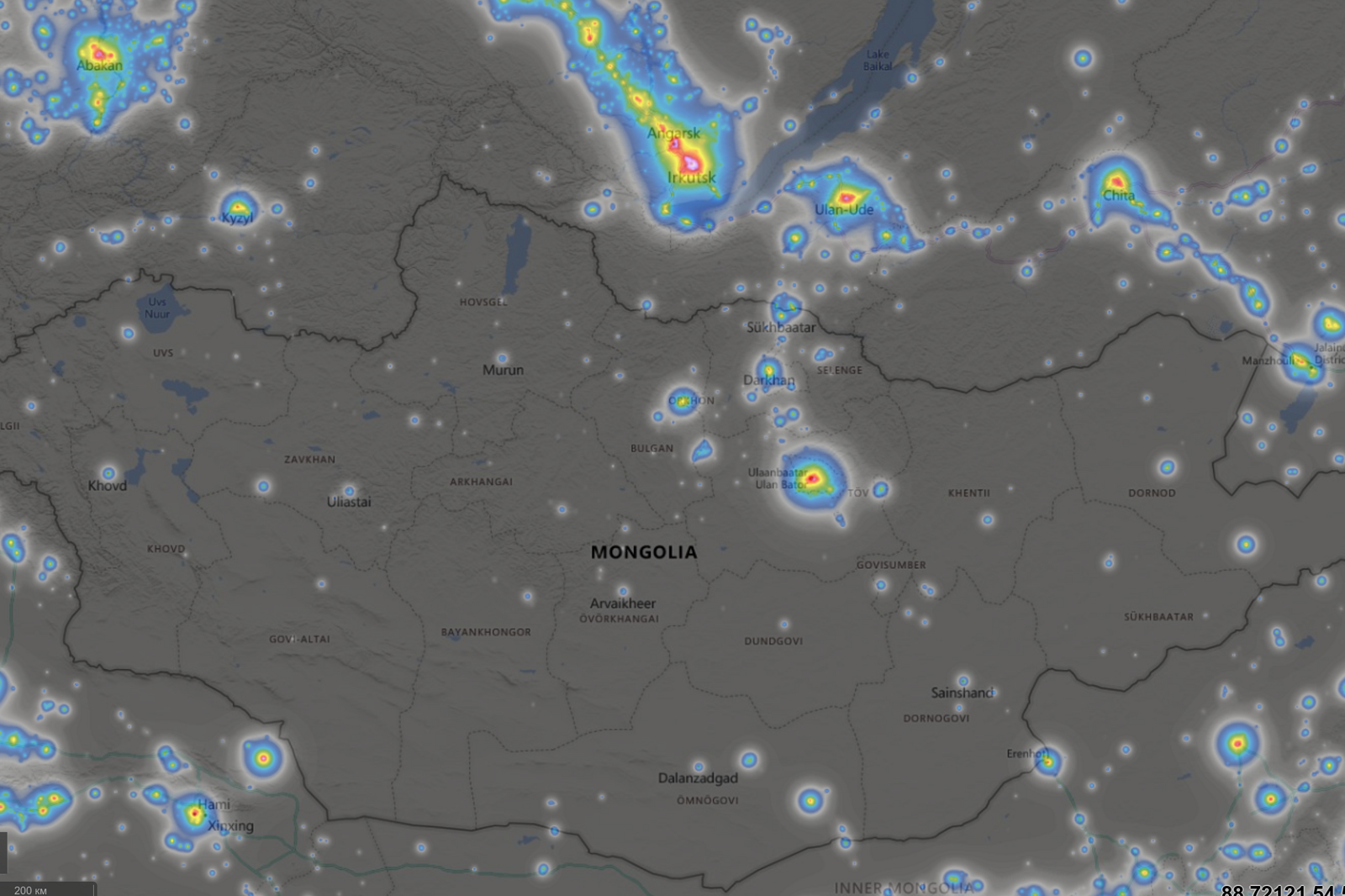 Световая карта Монголии